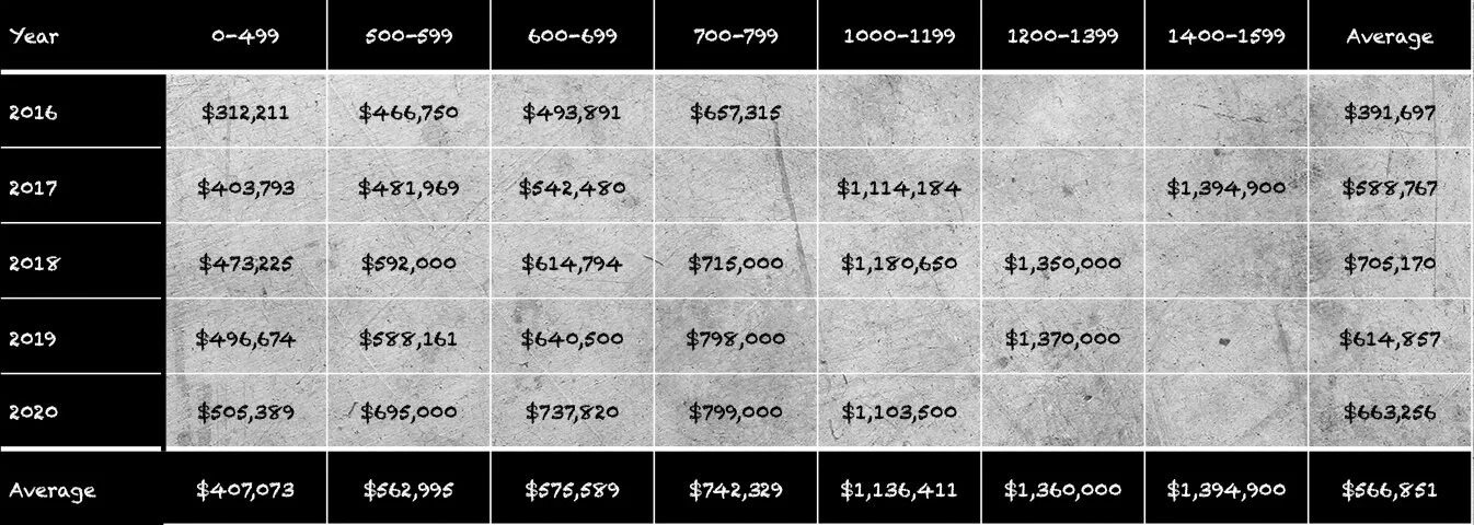 Specifically looking at the numbers for condo between 600-699 square feet, the average prices have increased by 33% over five years.